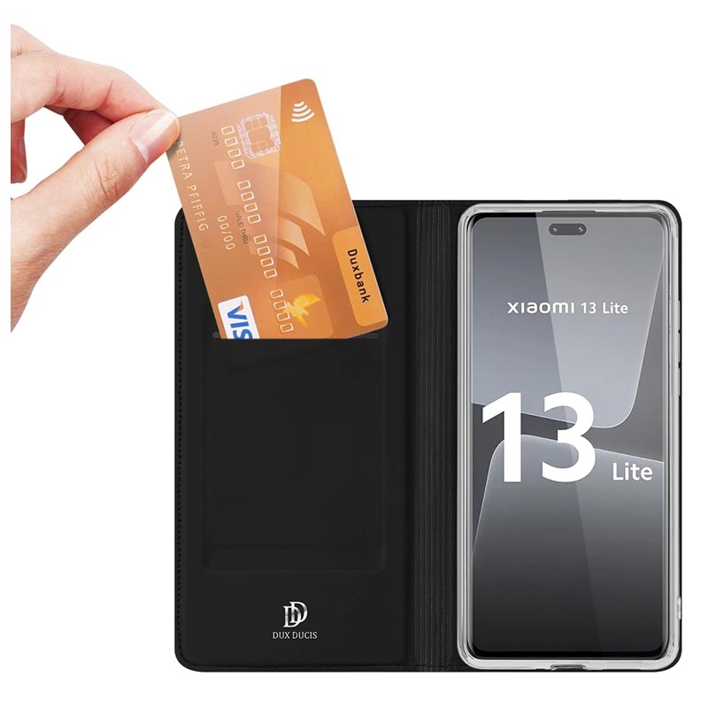 Com uma ranhura de cartão para armazenar o seu cartão de identidade ou cartão de crédito. A capa flip Dux Ducis Skin Pro para Xiaomi 13 Lite, Civi 2 também tem um suporte para visualização de multimédia em mãos livres.