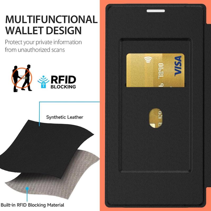 Esta capa premium para o Samsung Galaxy S24 Ultra é fabricada com TPU, acrílico e poliuretano de alta qualidade, utilizando um processo fino para garantir um acabamento delicado e requintado. Está equipada com uma prática ranhura para cartões, para facilitar a passagem de cartões e os gastos em viagem, e possui um íman forte para fecho automático, tornando seguro e prático o manuseamento dos itens no interior. Esta capa para o Samsung Galaxy S24 Ultra oferece uma proteção eficaz contra o desgaste diário, riscos, marcas e arranhões, enquanto a tecnologia avançada de bloqueio RFID na ranhura para cartões garante que as suas informações pessoais estão protegidas contra roubo. Além disso, o anel magnético incorporado é compatível com o carregamento sem fios MagSafe, o que significa que pode carregar o seu Samsung Galaxy S24 Ultra sem retirar a capa.