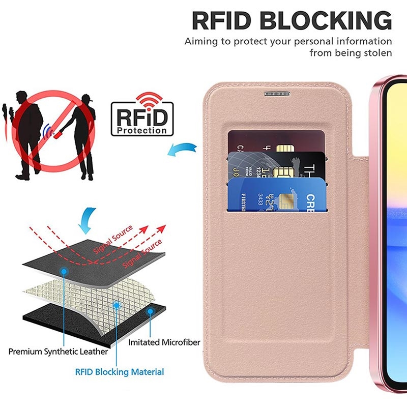 • Capa flip com ranhura para cartão para Samsung Galaxy A15 - Compatível com MagSafe, proteção RFID