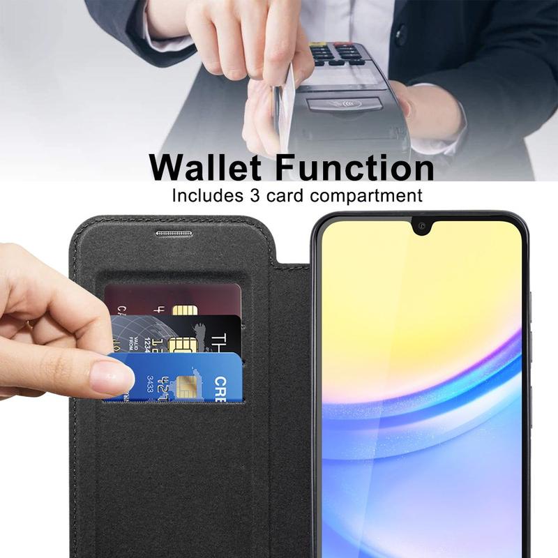 Capa flip com ranhura para cartão para Samsung Galaxy A15 - Compatível com MagSafe, proteção RFID
