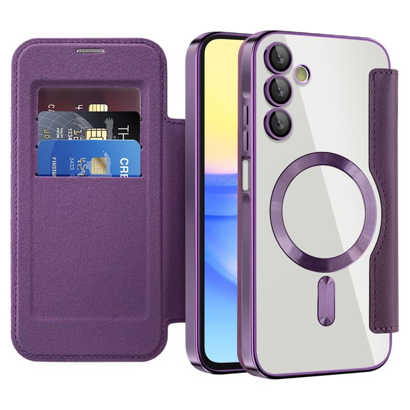 Capa flip com ranhura para cartão para Samsung Galaxy A15 - Compatível com MagSafe, proteção RFID