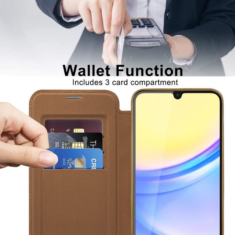 Capa flip com ranhura para cartão para Samsung Galaxy A15 - Compatível com MagSafe, proteção RFID