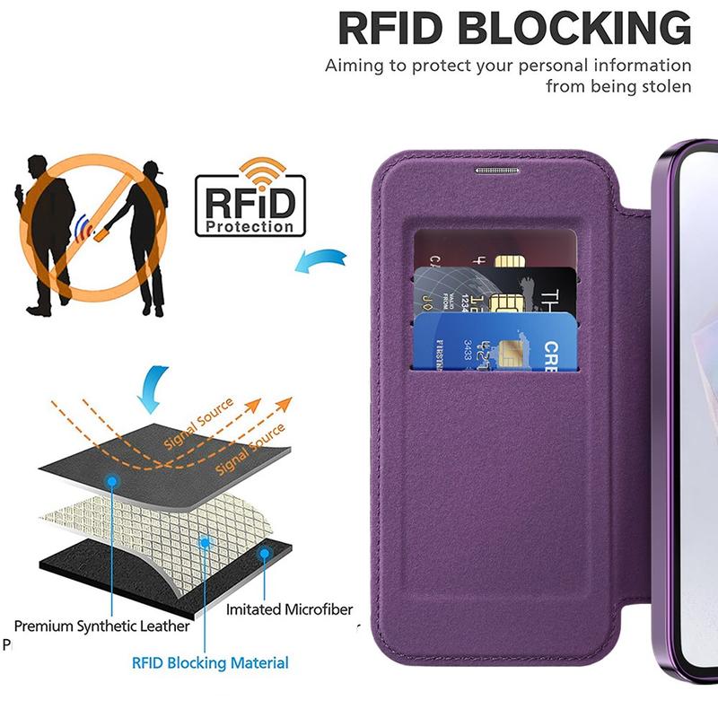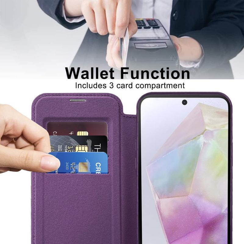Capa flip com ranhura para cartão para Samsung Galaxy A35 - Compatível com MagSafe, proteção RFID