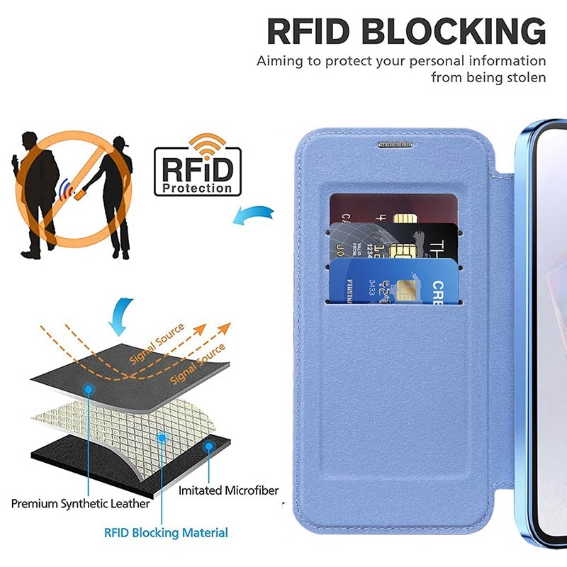 Esta capa premium para o Samsung Galaxy A35 é fabricada com TPU, acrílico e poliuretano de alta qualidade, utilizando um processo fino para garantir um acabamento delicado e requintado. Está equipada com uma prática ranhura para cartões, para facilitar a passagem de cartões e os gastos em viagem, e possui um íman forte para fecho automático, tornando seguro e prático o manuseamento dos itens no interior. Esta capa para o Samsung Galaxy A35 oferece uma proteção eficaz contra o desgaste diário, riscos, marcas e arranhões, enquanto a tecnologia avançada de bloqueio RFID na ranhura para cartões garante que as suas informações pessoais estão protegidas contra roubo. Além disso, o anel magnético incorporado é compatível com o carregamento sem fios MagSafe, o que significa que pode carregar o seu Samsung Galaxy A35 sem retirar a capa.