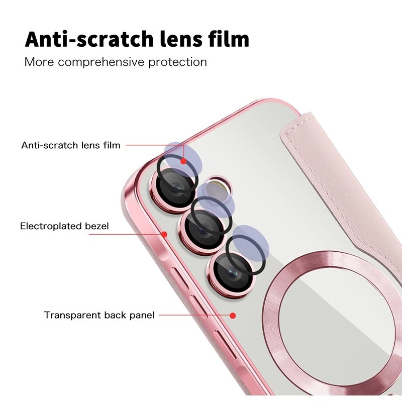 Esta capa premium para o Samsung Galaxy A55 é fabricada com TPU, acrílico e poliuretano de alta qualidade, utilizando um processo fino para garantir um acabamento delicado e requintado. Está equipada com uma prática ranhura para cartões, para facilitar a passagem de cartões e os gastos em viagem, e possui um íman forte para fecho automático, tornando seguro e prático o manuseamento dos itens no interior. Esta capa para o Samsung Galaxy A55 oferece uma proteção eficaz contra o desgaste diário, riscos, marcas e arranhões, enquanto a tecnologia avançada de bloqueio RFID na ranhura para cartões garante que as suas informações pessoais estão protegidas contra roubo. Além disso, o anel magnético incorporado é compatível com o carregamento sem fios MagSafe, o que significa que pode carregar o seu Samsung Galaxy A55 sem retirar a capa.