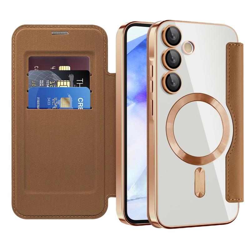 Capa flip com ranhura para cartão para Samsung Galaxy A55 - Compatível com MagSafe, proteção RFID