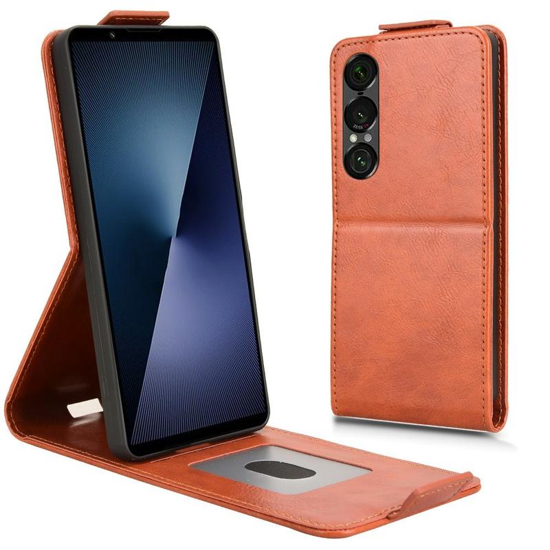 Capa flip vertical para Sony Xperia 1 VII - Fecho magnético, função de suporte, suporte para cartões