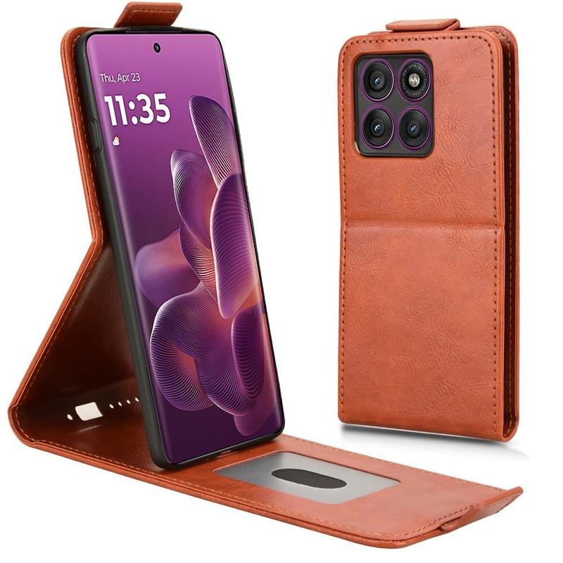 Capa flip vertical para Motorola Edge 60 Pro - Fecho magnético, função de suporte, suporte para cartões