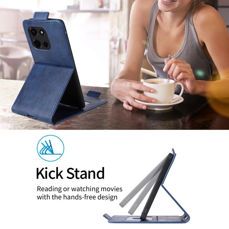 Capa flip vertical para Motorola Edge (2025) - Fecho magnético, função de suporte, suporte para cartões