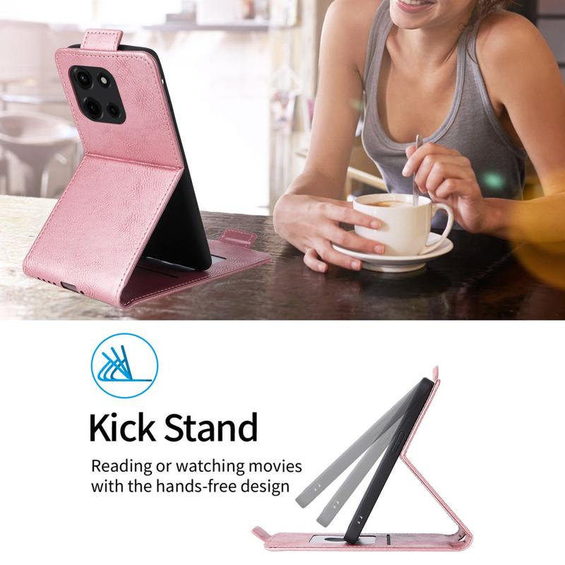 Esta capa oferece uma mistura de elegância e funcionalidade, tornando-a adequada para várias ocasiões. O fecho magnético adiciona uma camada extra de segurança, enquanto a função de suporte melhora a sua experiência de visualização. O seu design leve garante que o seu telemóvel permanece portátil e fácil de manusear.