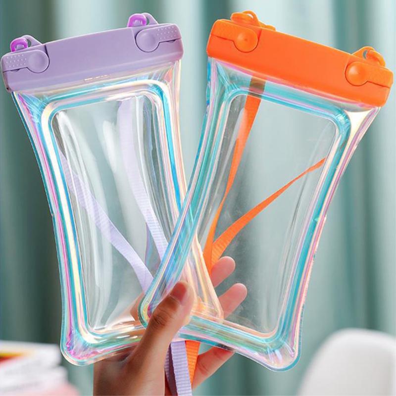 Capa flutuante holográfica à prova de água para smartphone com cordão de segurança - 23 cm x 11,5 cm