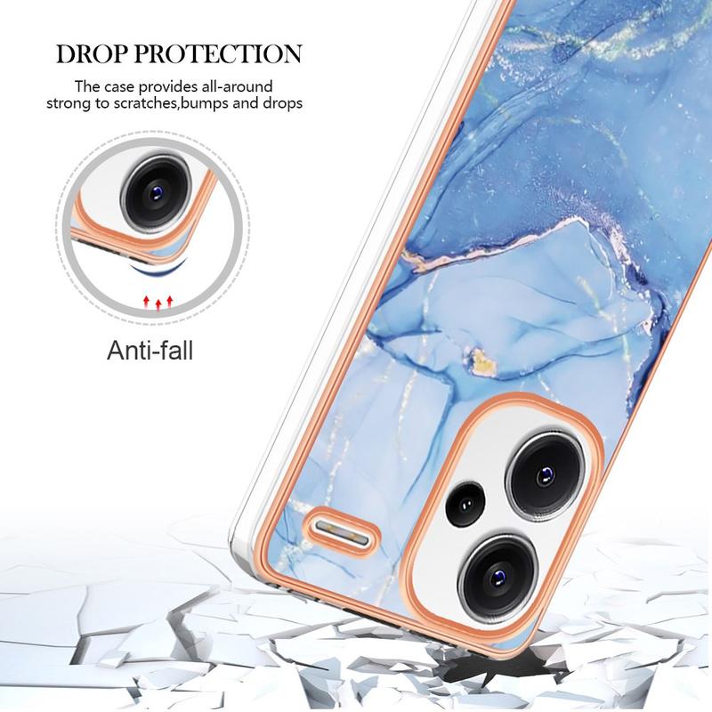 Capa Galvanizada de TPU para Xiaomi Redmi Note 13 Pro+ com Padrão de Mármore - Azul