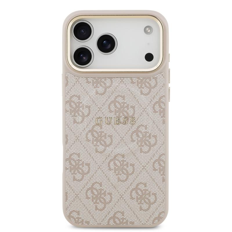 Se procura uma capa com aparência premium e prática, esta capa da Guess é a escolha certa. Ela oferece uma aderência segura, um encaixe preciso e compatibilidade com MagSafe, para que possa continuar a carregar sem fios e usar acessórios sem complicações. A moldura dourada da câmara e a icónica impressão 4G adicionam um acabamento elegante que se destaca sem ser chamativo.