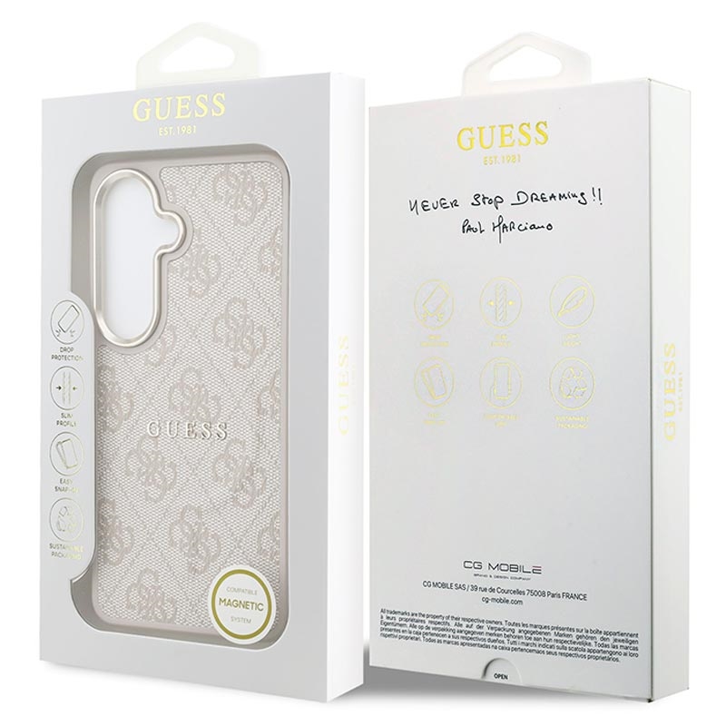 Capa MagSafe Guess 4G Gold Frame para Samsung Galaxy S26+ - Capa protetora fina, poliuretano, compatível com carregamento sem fios