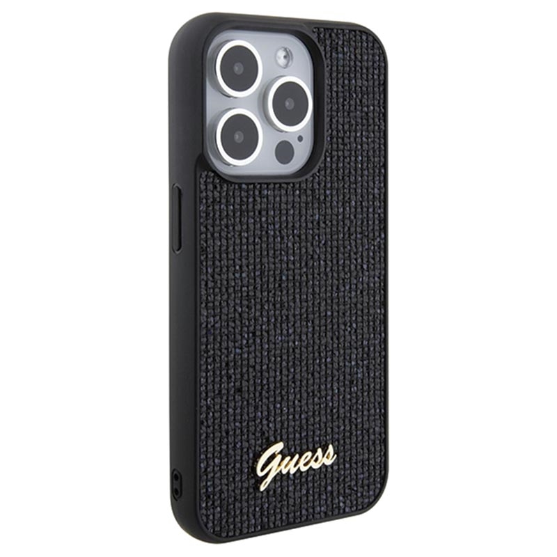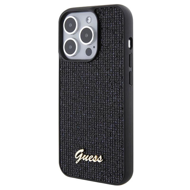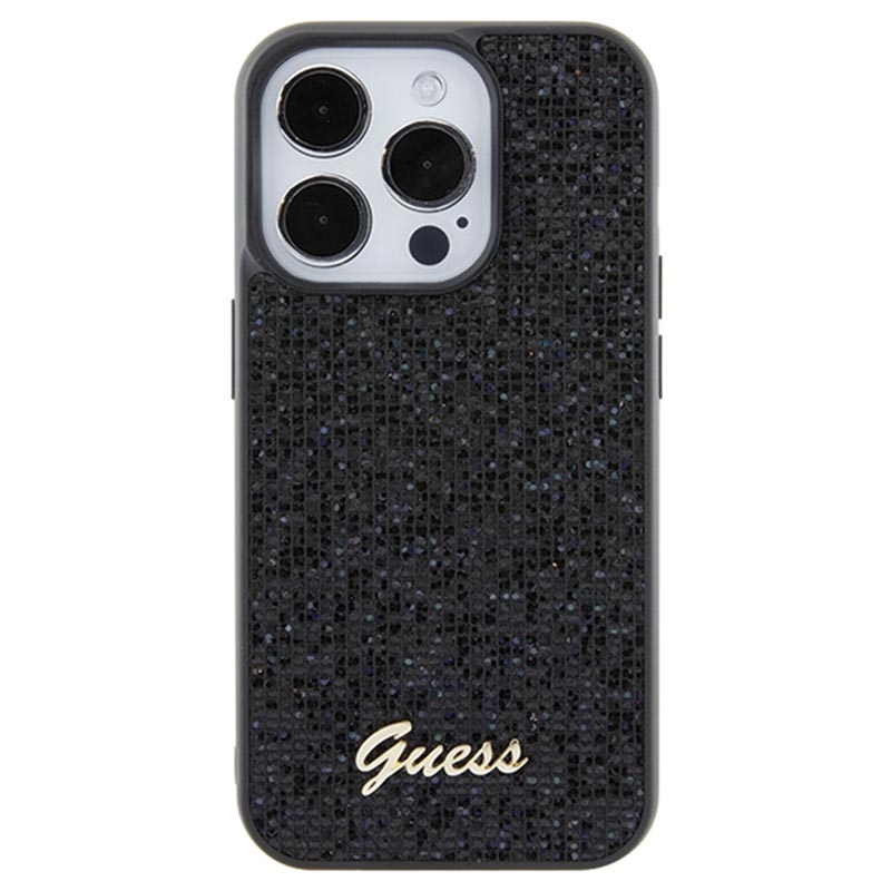 - Capa com logotipo Dazzling Guess Disco Metal Script para o seu iPhone 15 Pro