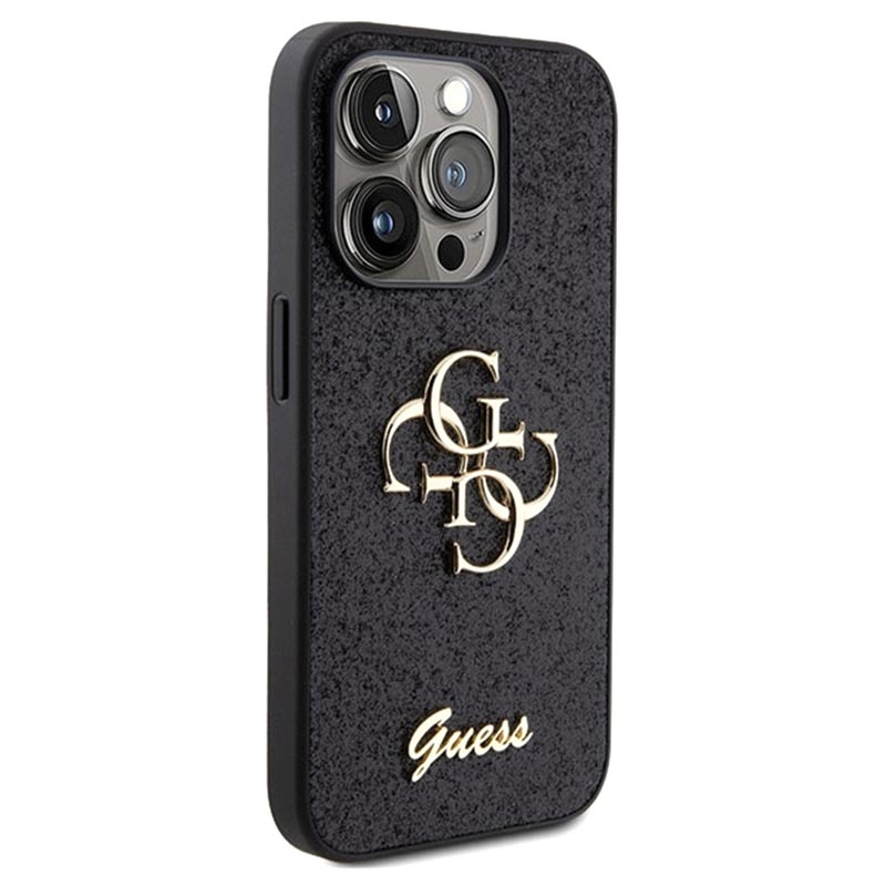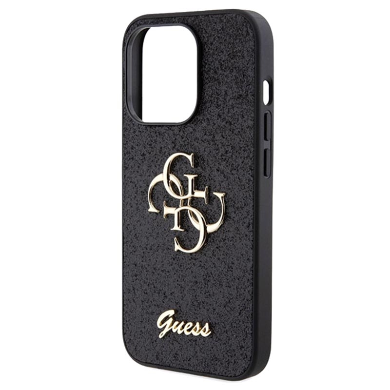 - Espetacular capa com logotipo de metal Guess Fixed Glitter 4G para iPhone 15 Pro
