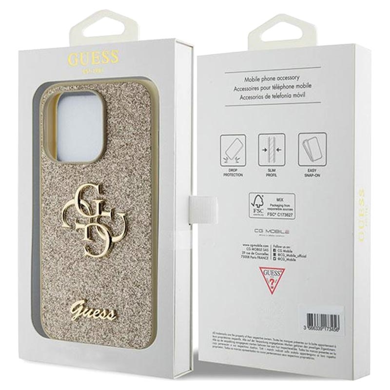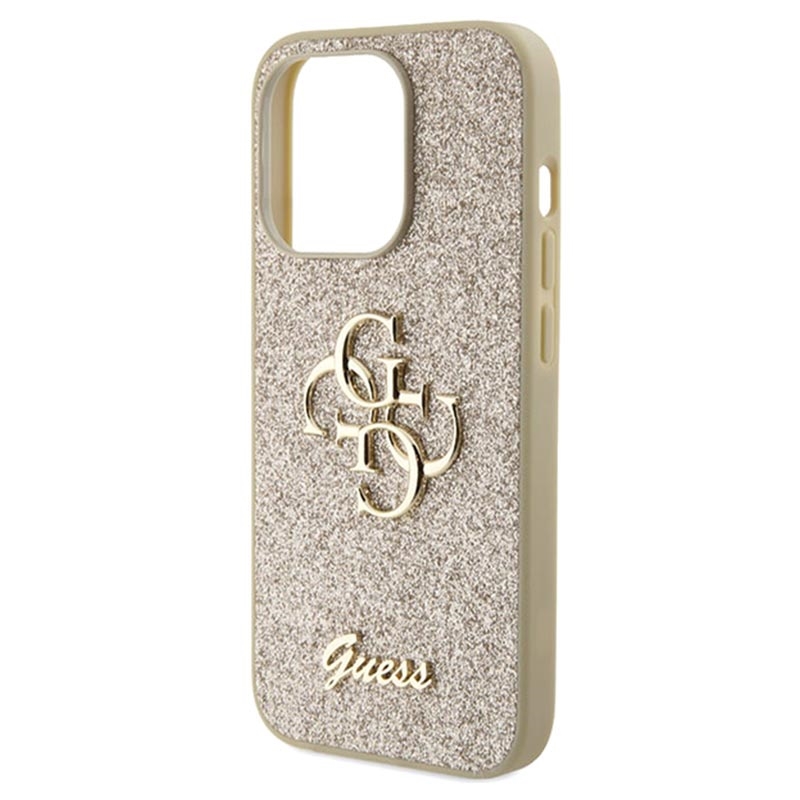 - Espetacular capa com logotipo de metal Guess Fixed Glitter 4G para iPhone 15 Pro