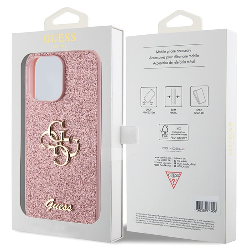 • Capa Guess Fixed Glitter 4G Metal Logo para iPhone 15 Pro Max