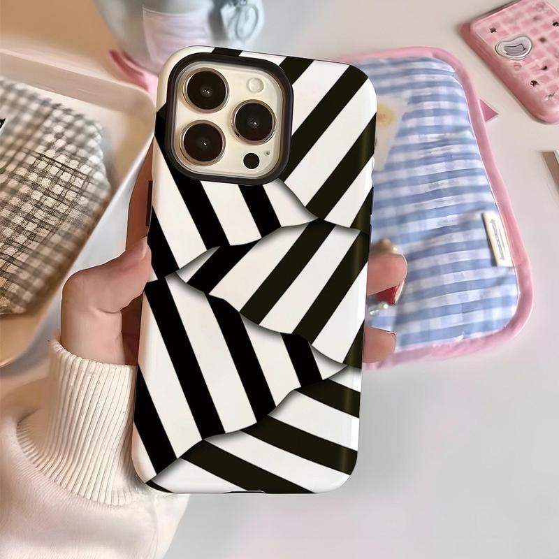 Capa híbrida 2 em 1 removível com listras para iPhone 15 Pro