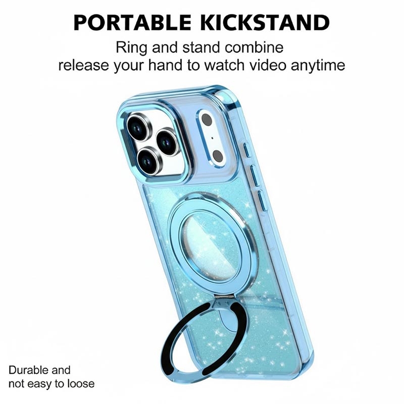 Capa brilhante com suporte para iPhone 17 Pro - Compatível com MagSafe TPU + PC Hybrid Kickstand Cover