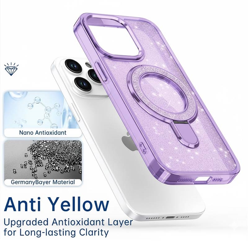 - Design Glitter - Apresenta um acabamento brilhante e brilhante na capa e no suporte do anel, dando ao seu telefone uma aparência única e atraente.