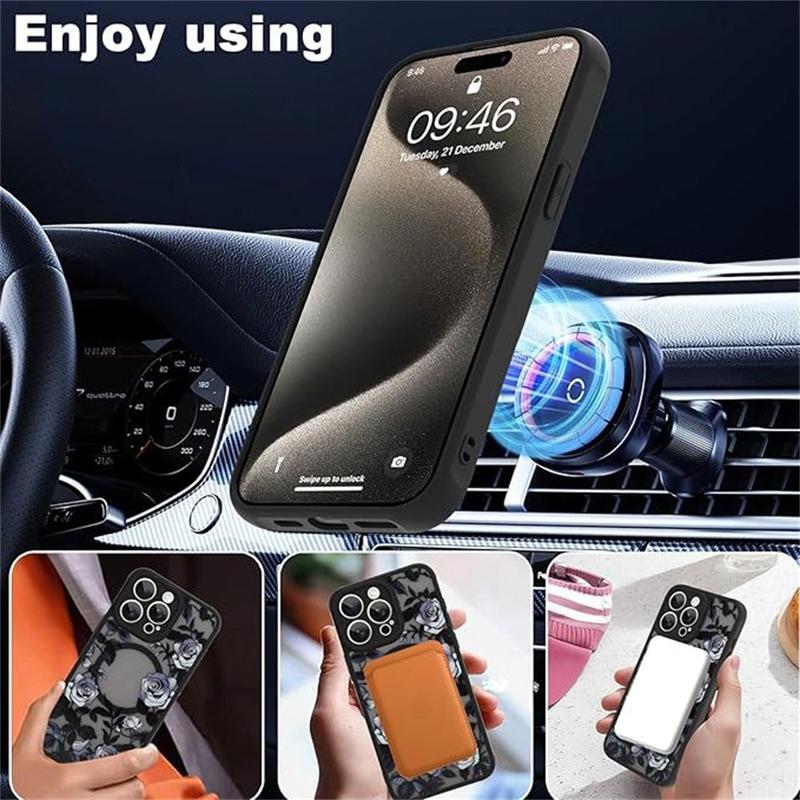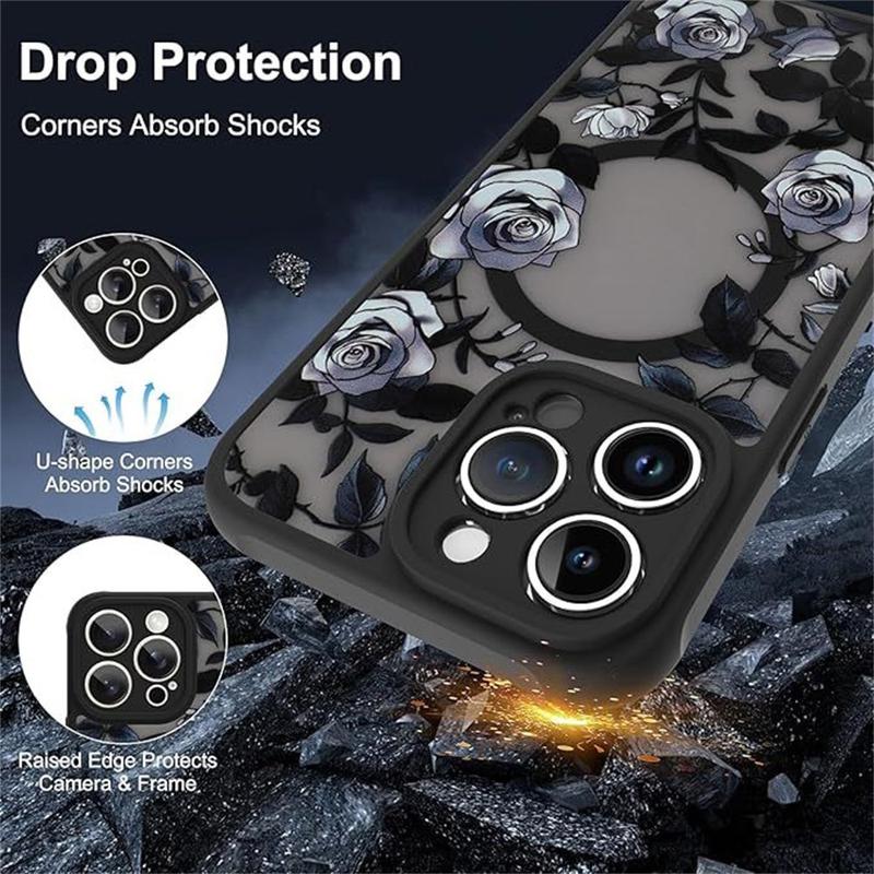 A Capa MagSafe Rose Flower para iPhone 15 Pro oferece uma fusão perfeita de charme vintage e inovação moderna. Com a sua construção híbrida durável, acabamento anti-impressão digital e compatibilidade total com MagSafe, protege o seu telefone, mantendo-o elegante, fino e funcional.