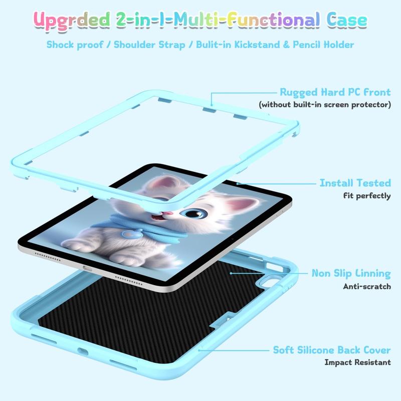 Capa híbrida para gatos com suporte, alça de ombro e suporte para caneta para iPad (2022), iPad (2025)
