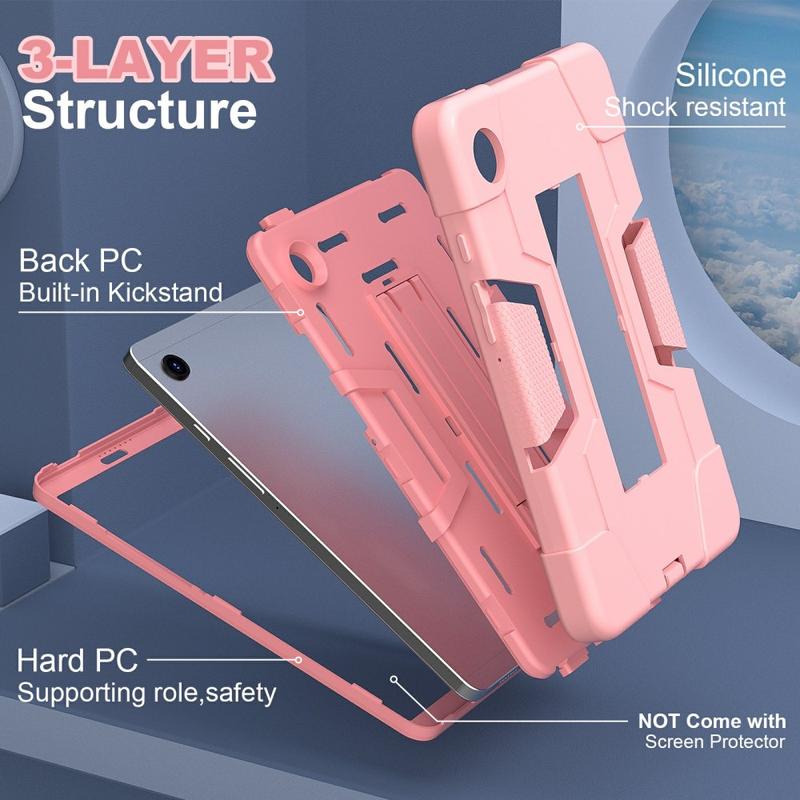 Capa híbrida estilo robô para Samsung Galaxy Tab A11 - Capa protetora de camada tripla com suporte de ponta incorporado e suporte para caneta