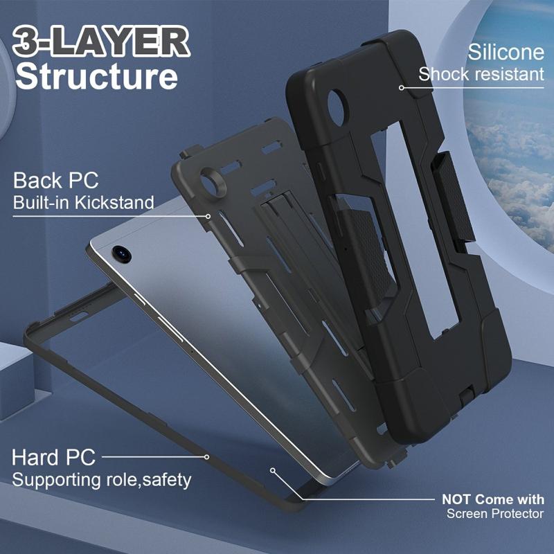 Capa híbrida estilo robô para Samsung Galaxy Tab A11 - Capa protetora de camada tripla com suporte de ponta incorporado e suporte para caneta