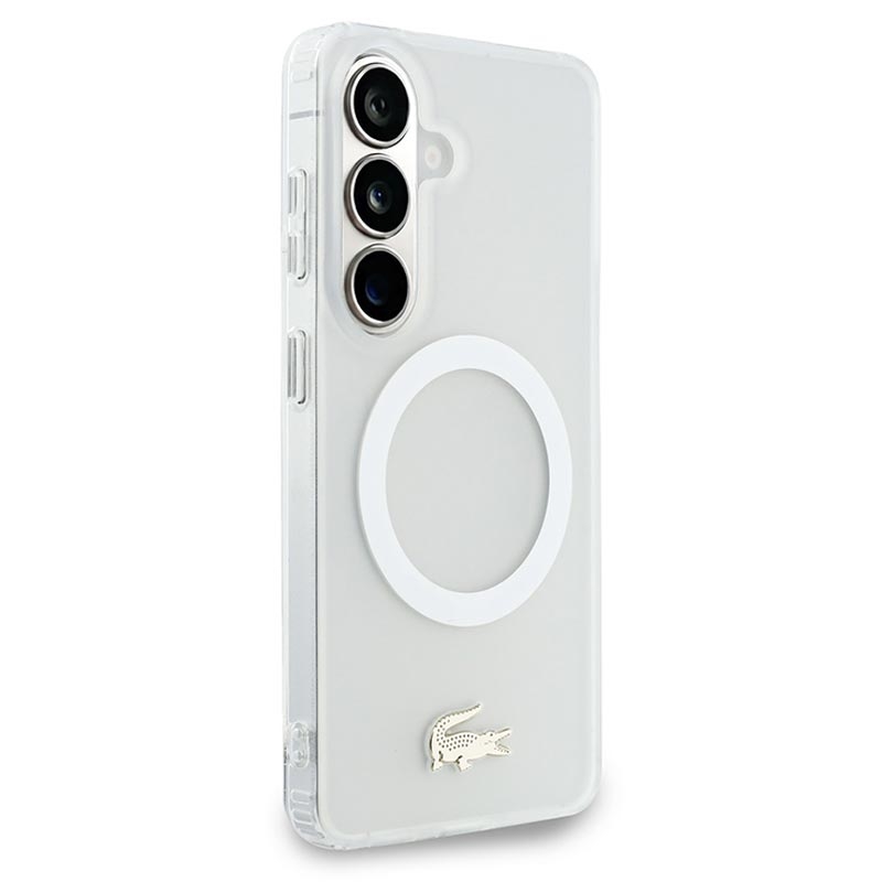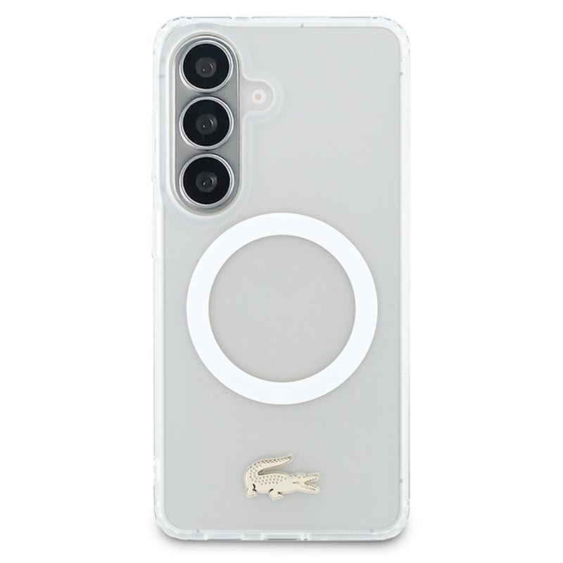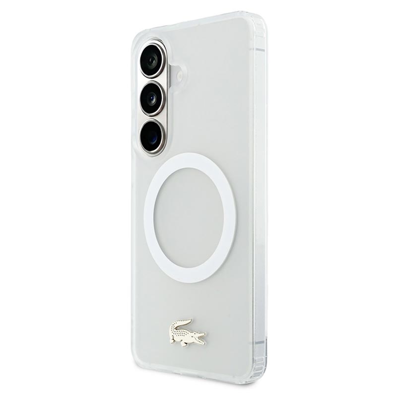Capa híbrida Lacoste Frosted Finish Gold Logo para Samsung Galaxy S26 - Compatível com MagSafe, logótipo dourado e moldura da câmara Premium