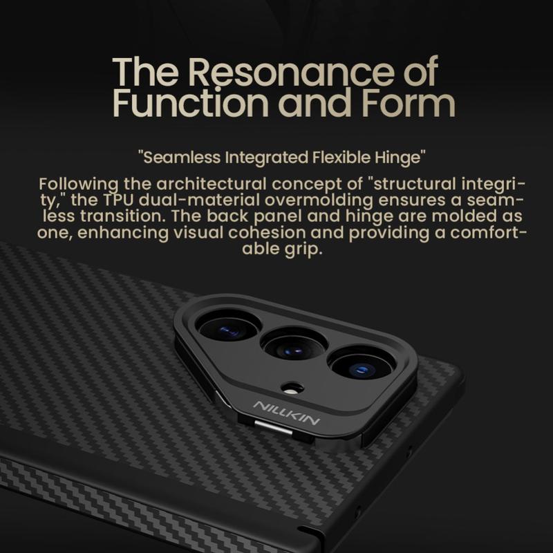 Dê ao seu Samsung Galaxy Z Fold7 a mesma proteção de que goza o equipamento aeroespacial. O Nillkin CarboProp combina fibra de aramida "preto-dourada" com TPU de absorção de choques para criar uma capa leve como uma pluma que resiste às quedas do dia a dia, mantendo a silhueta suave e dobrável do telemóvel. Uma estrutura metálica integrada para a câmara funciona como suporte para as mãos livres e os ímanes incorporados encaixam perfeitamente nos carregadores e acessórios MagSafe - não são necessárias placas adicionais.