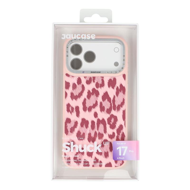Jaucase Capa híbrida magnética com impressão de leopardo para iPhone 17 Pro - PU + TPU + PC com moldura de lente em strass