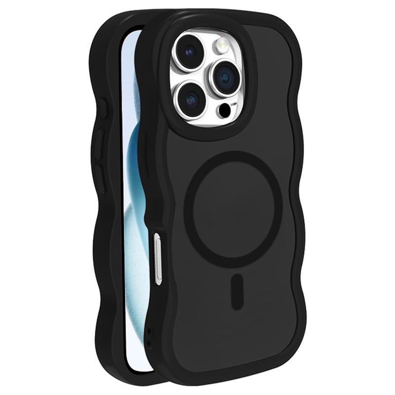 Capa híbrida magnética de bordo ondulado para iPhone 16 Pro Max - Capa protetora TPU + PC compatível com MagSafe