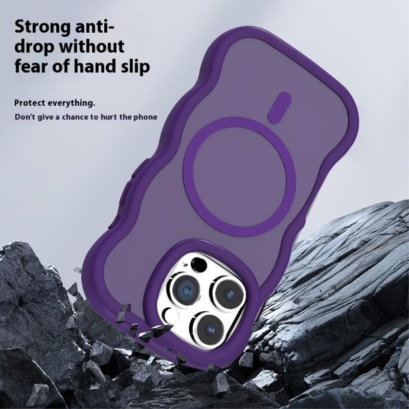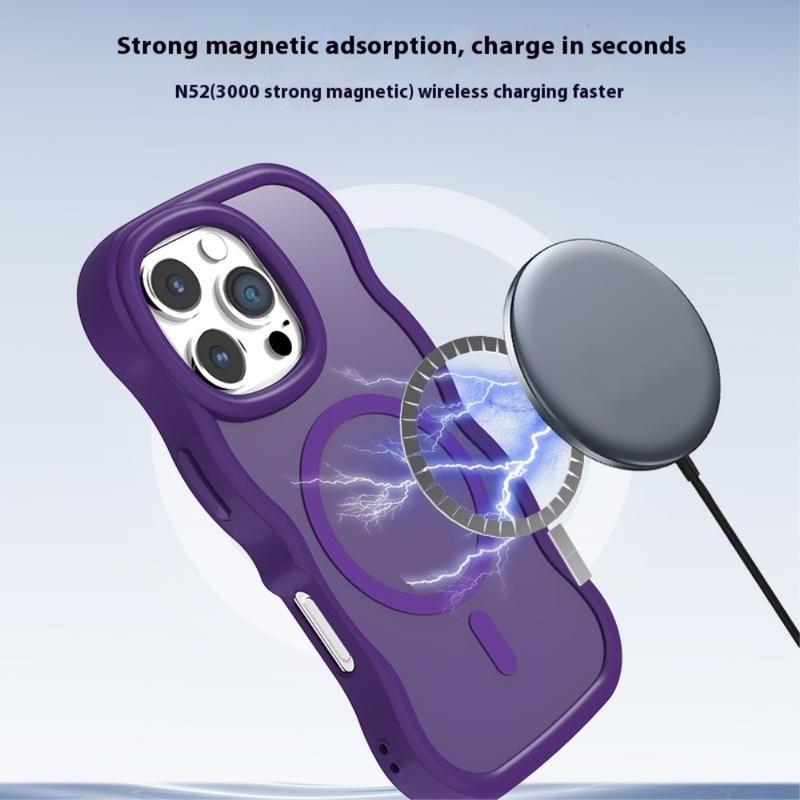 Capa híbrida magnética de bordo ondulado para iPhone 16 Pro Max - Capa protetora TPU + PC compatível com MagSafe