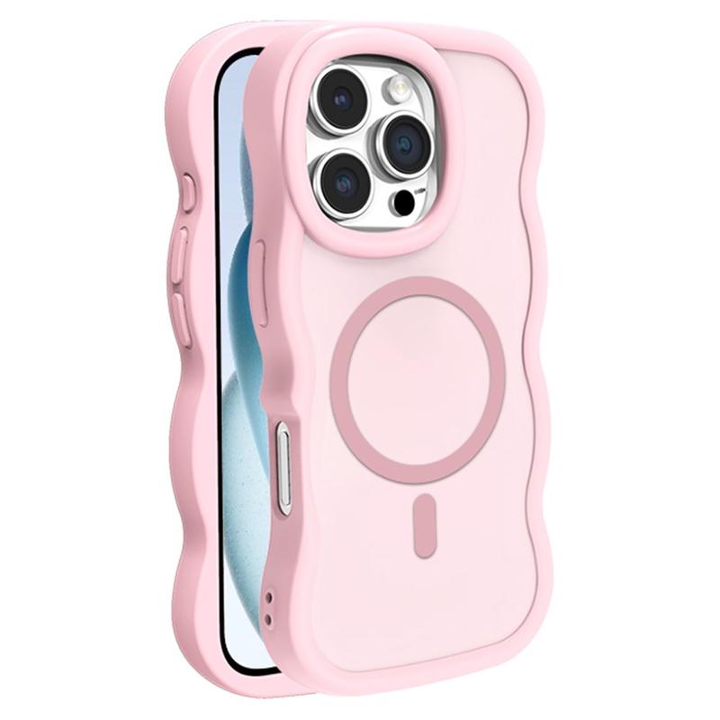 Capa híbrida magnética de bordo ondulado para iPhone 16 Pro - Capa protetora TPU + PC compatível com MagSafe