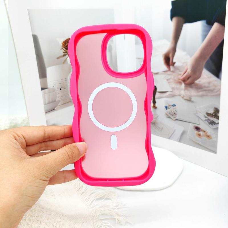 Capa híbrida magnética de bordo ondulado para iPhone 16 Pro - Capa protetora TPU + PC compatível com MagSafe