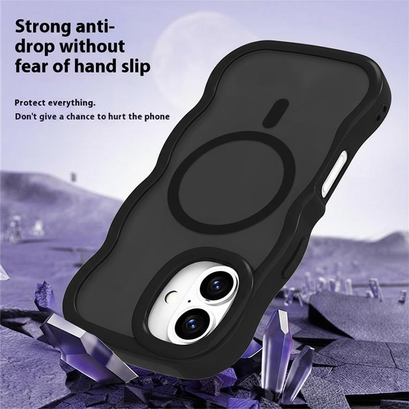 Capa híbrida magnética de bordo ondulado para iPhone 16 - Capa protetora TPU + PC compatível com MagSafe