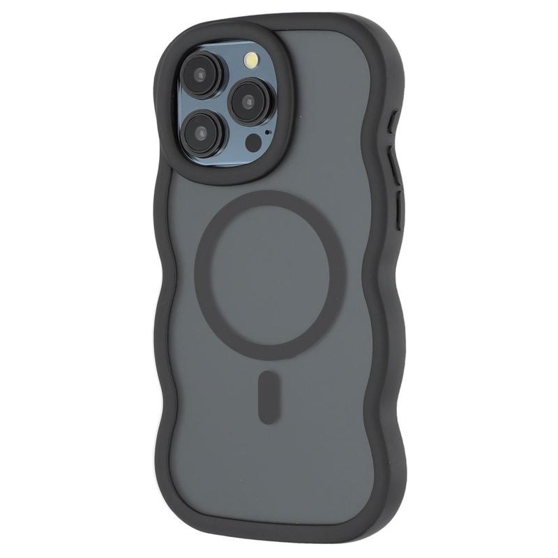 Capa híbrida magnética de bordo ondulado para iPhone 15 Pro Max - Capa protetora TPU + PC compatível com MagSafe