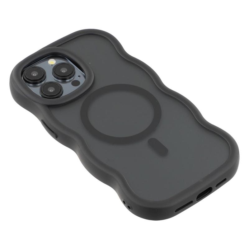 Capa híbrida magnética de bordo ondulado para iPhone 15 Pro - Capa protetora TPU + PC compatível com MagSafe