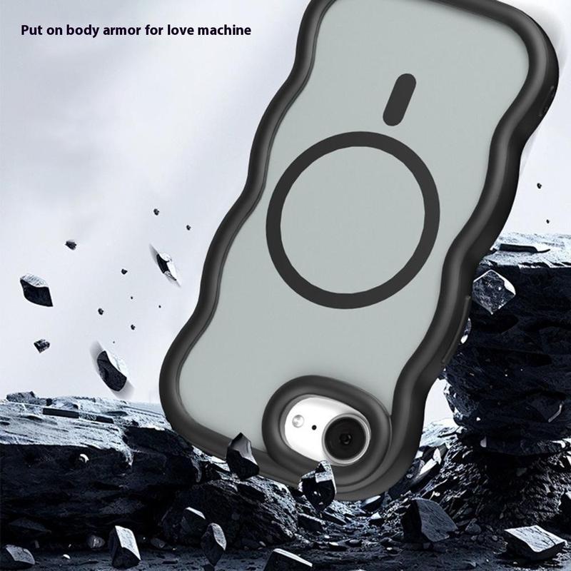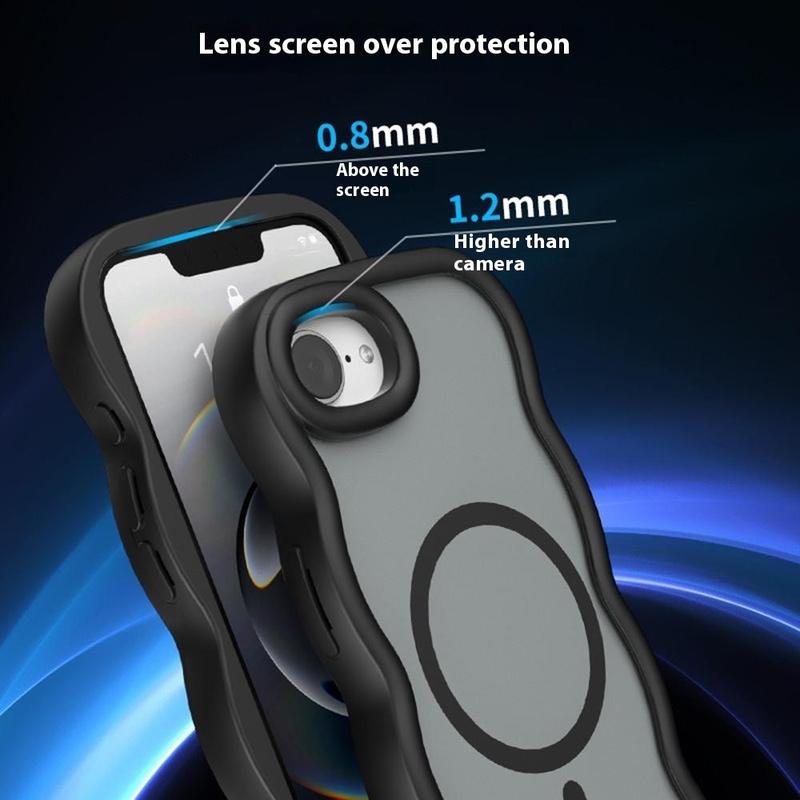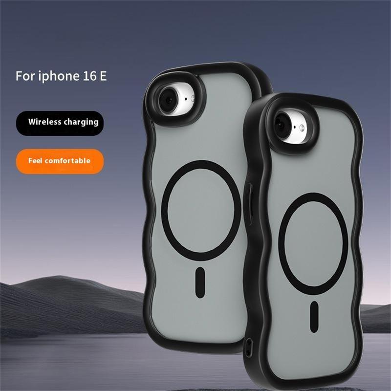 Capa híbrida magnética de bordo ondulado para iPhone 16e - Capa protetora TPU + PC compatível com MagSafe