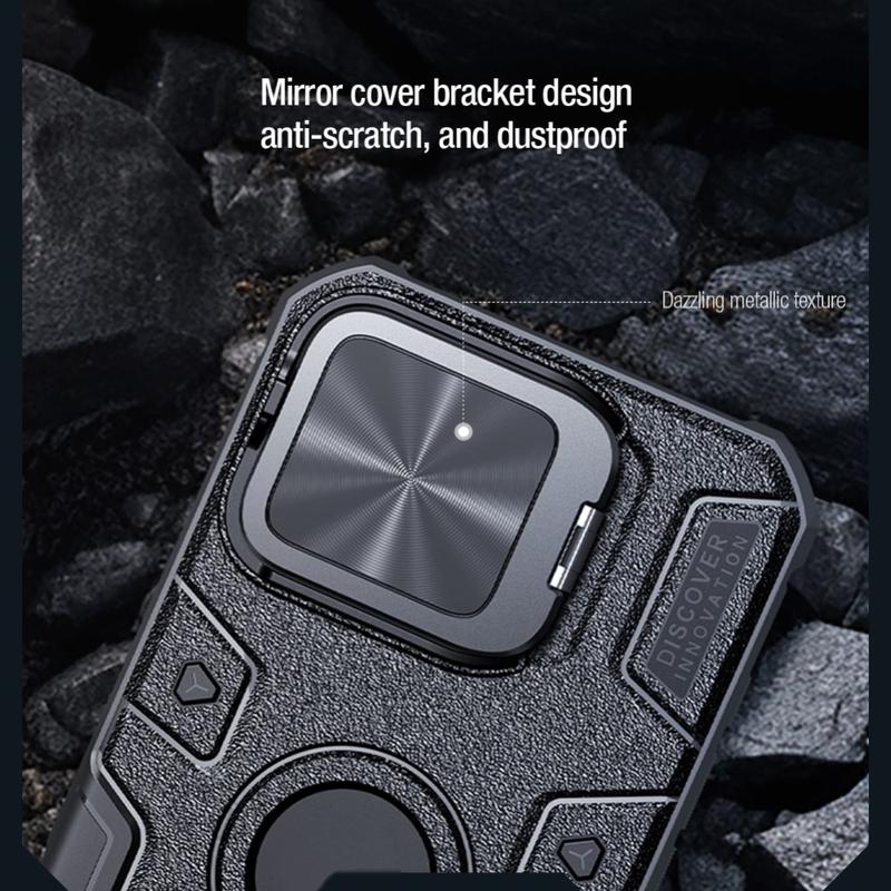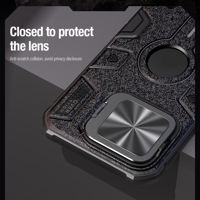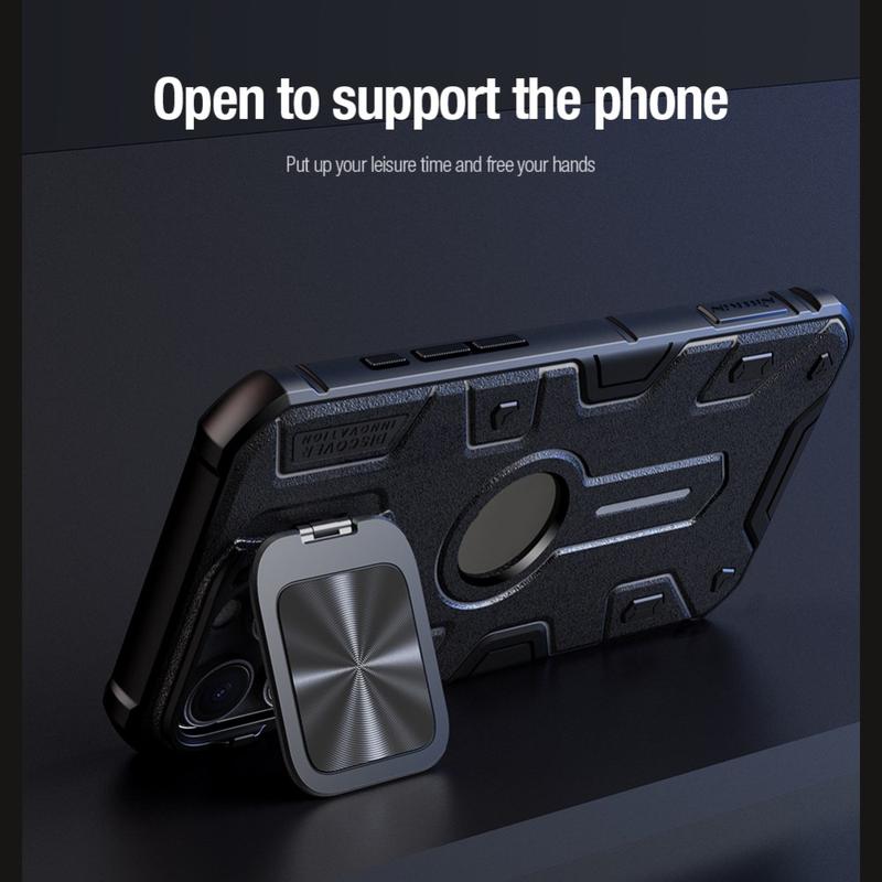A capa protetora Nillkin CamShield Armor é perfeita para aqueles que desejam proteção máxima para o seu iPhone 16 Pro Max, mantendo a funcionalidade elegante. A tampa da lente da câmara garante que as suas lentes permaneçam intactas, enquanto o suporte incorporado e a compatibilidade MagSafe proporcionam uma conveniência adicional.