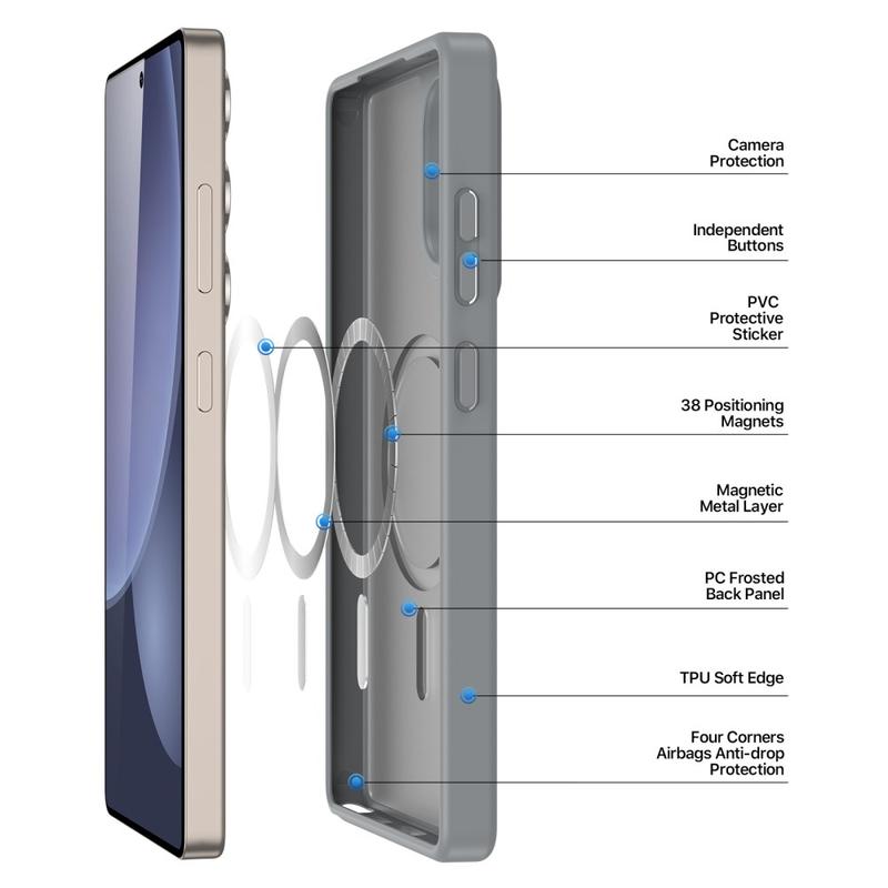 Proteja o seu Samsung Galaxy S25 Ultra com uma elegante capa mate que se encaixa diretamente nos carregadores e acessórios MagSafe. A série Yind combina uma placa posterior em PC resistente a riscos com extremidades em TPU que absorvem os choques e um anel magnético alinhado com precisão, proporcionando uma alimentação sem cabos e uma proteção total contra quedas sem bolsos volumosos.