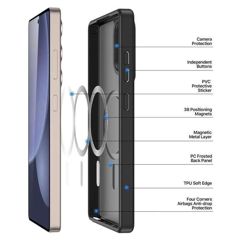 Proteja o seu Samsung Galaxy S25 Ultra com uma elegante capa mate que se encaixa diretamente nos carregadores e acessórios MagSafe. A série Yind combina uma placa posterior em PC resistente a riscos com extremidades em TPU que absorvem os choques e um anel magnético alinhado com precisão, proporcionando uma alimentação sem cabos e uma proteção total contra quedas sem bolsos volumosos.