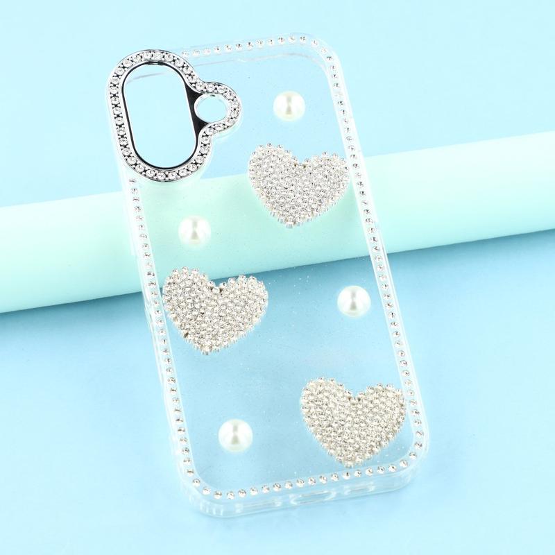 Esta capa para iPhone 17 combina uma proteção fiável para o dia a dia com um estilo glamoroso. Com brilhantes strass à volta das extremidades e decorações em coração de pérola cintilantes na parte de trás, transforma o seu iPhone 17 num acessório de moda, mantendo-o protegido contra riscos e choques.