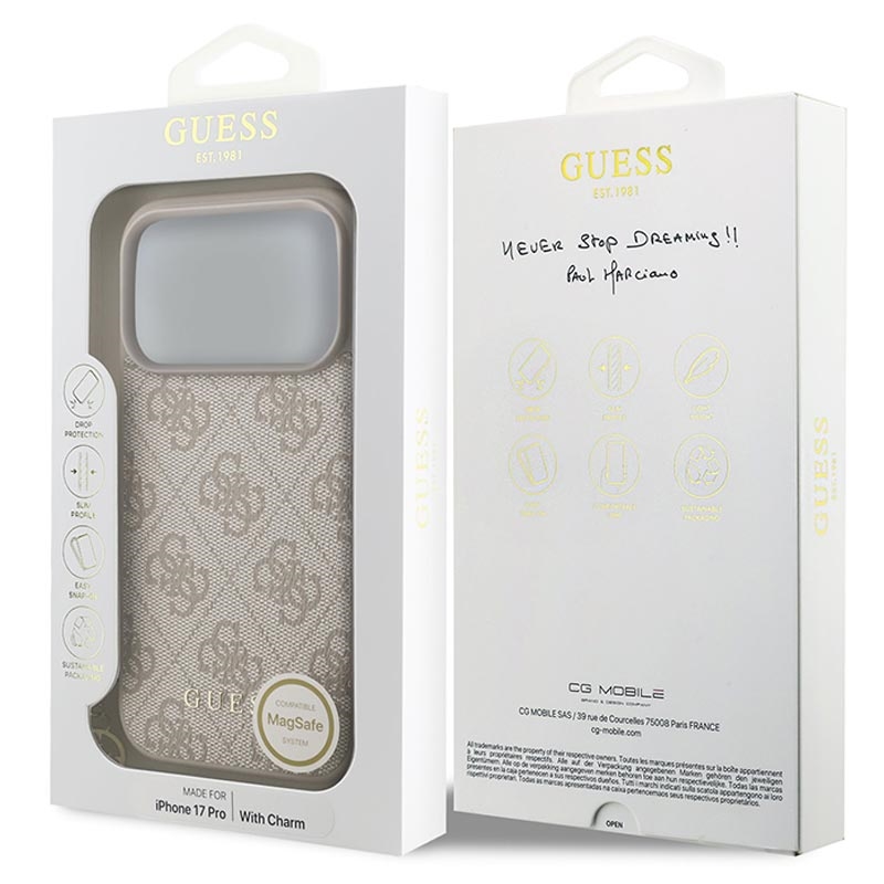 Capa híbrida compatível com MagSafe Guess 4G Charm para iPhone 17 Pro