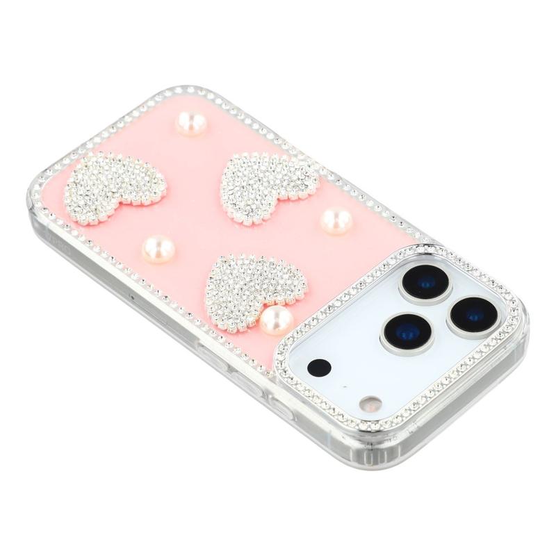 Esta capa para iPhone 17 Pro combina uma proteção fiável para o dia a dia com um estilo glamoroso. Com brilhantes strass à volta das extremidades e decorações em coração de pérola cintilantes na parte de trás, transforma o seu iPhone 17 Pro num acessório de moda, mantendo-o protegido contra riscos e choques.