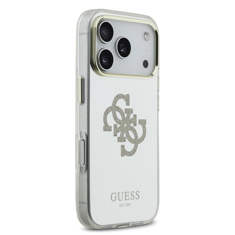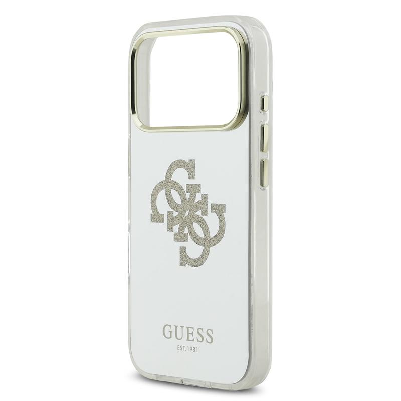 Capa híbrida Guess Mirror 4G Glitter Logo para iPhone 17 Pro - Capa traseira de PC/TPU compatível com MagSafe com acabamento espelhado