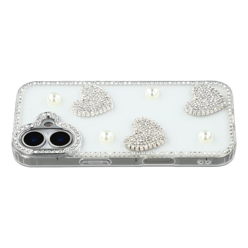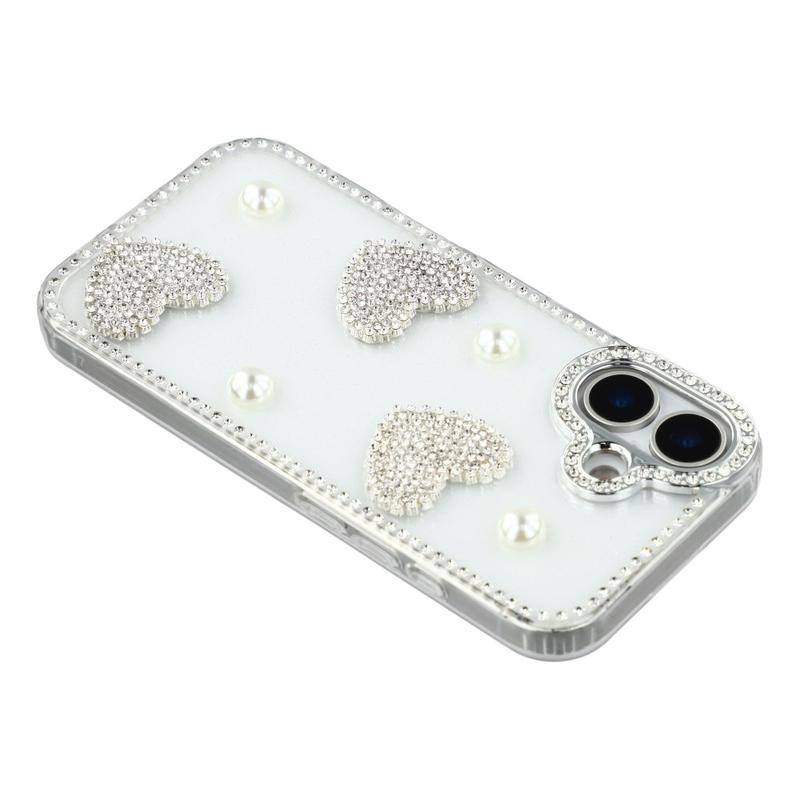 Esta capa para iPhone 16 combina uma proteção fiável para o dia a dia com um estilo glamoroso. Com brilhantes strass à volta das extremidades e decorações em coração de pérola cintilantes na parte de trás, transforma o seu iPhone 16 num acessório de moda, mantendo-o protegido contra riscos e choques.