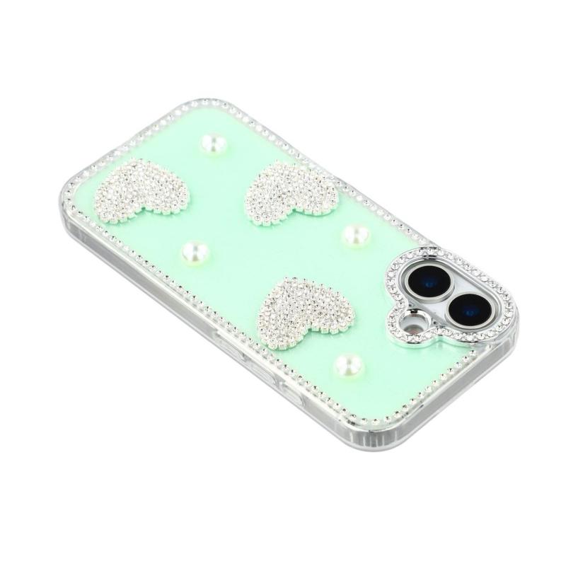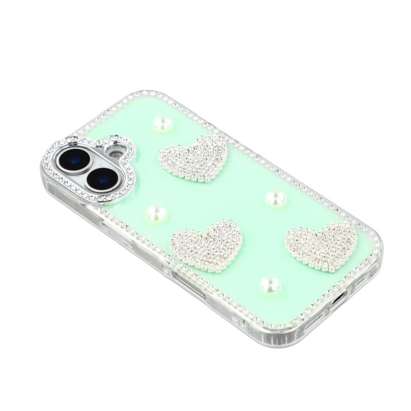 Esta capa para iPhone 16 combina uma proteção fiável para o dia a dia com um estilo glamoroso. Com brilhantes strass à volta das extremidades e decorações em coração de pérola cintilantes na parte de trás, transforma o seu iPhone 16 num acessório de moda, mantendo-o protegido contra riscos e choques.