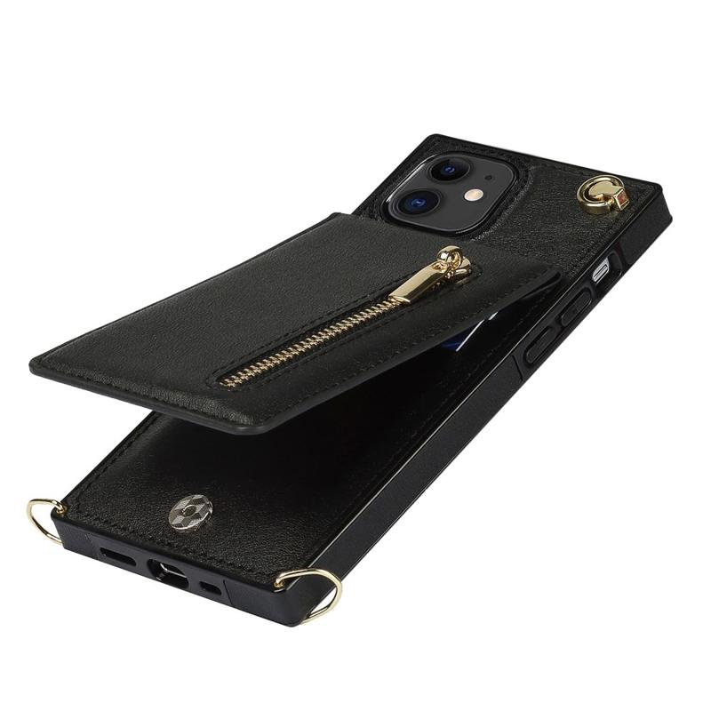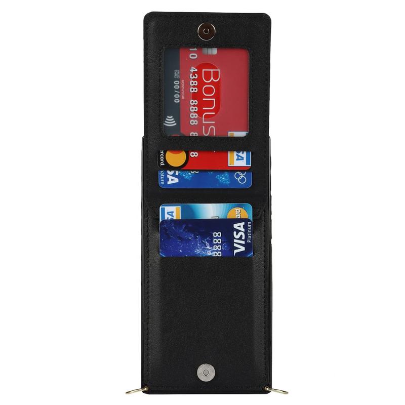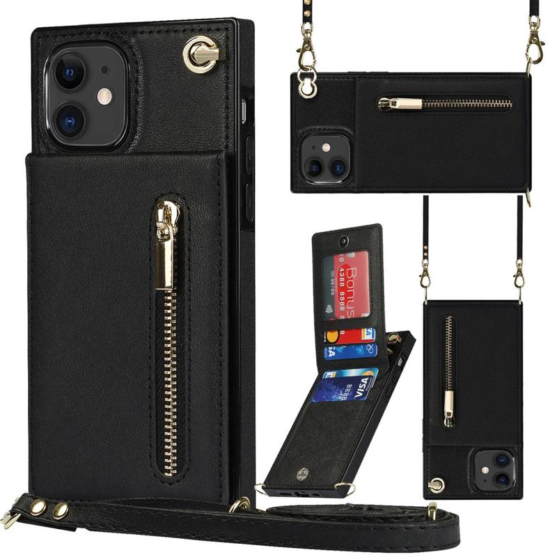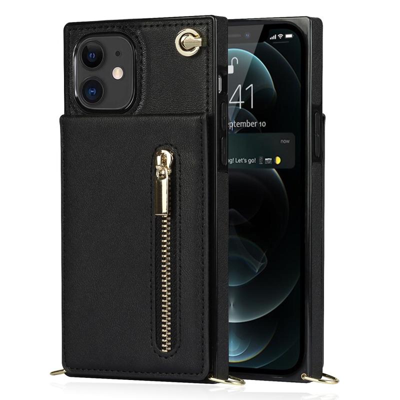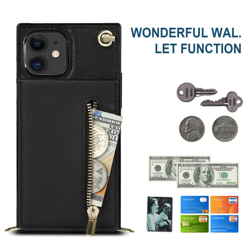 Capa híbrida com carteira e cordão de pescoço para iPhone 11